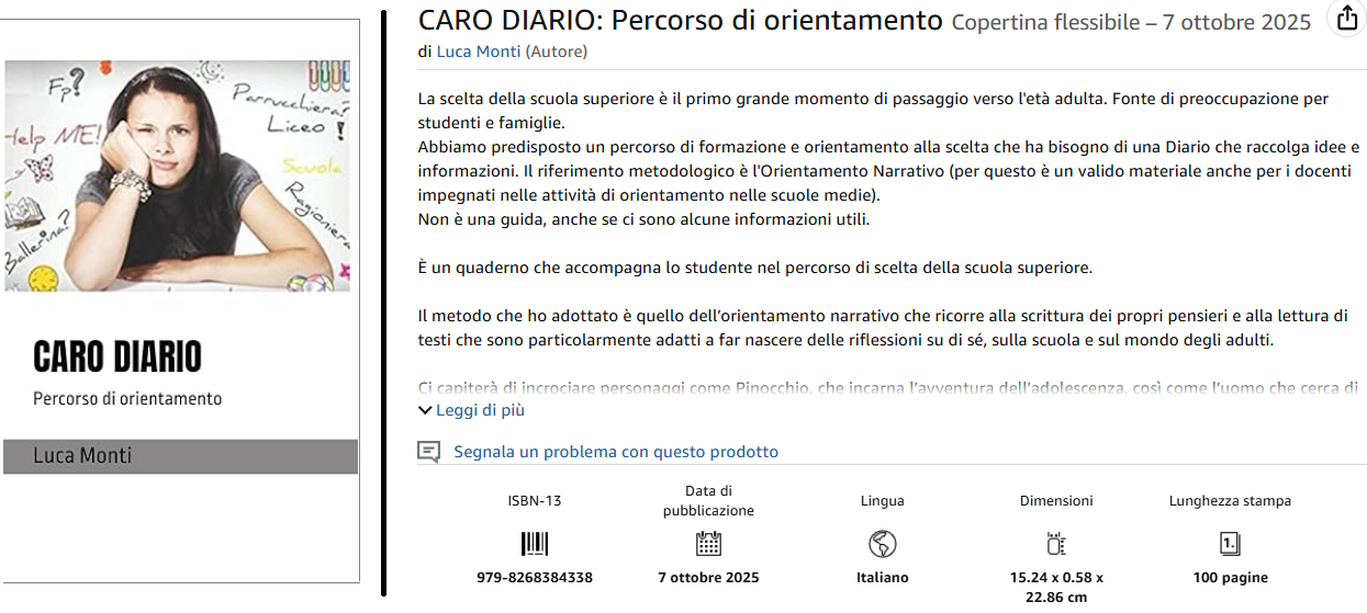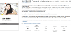 CARO DIARIO è il tuo vero e proprio diario di orientamento. Ti offre spazi di scrittura, riflessione, lettura, QR per video, questionari e test con fonti ufficiali per le informazioni su scuola superiore e formazione universitaria.